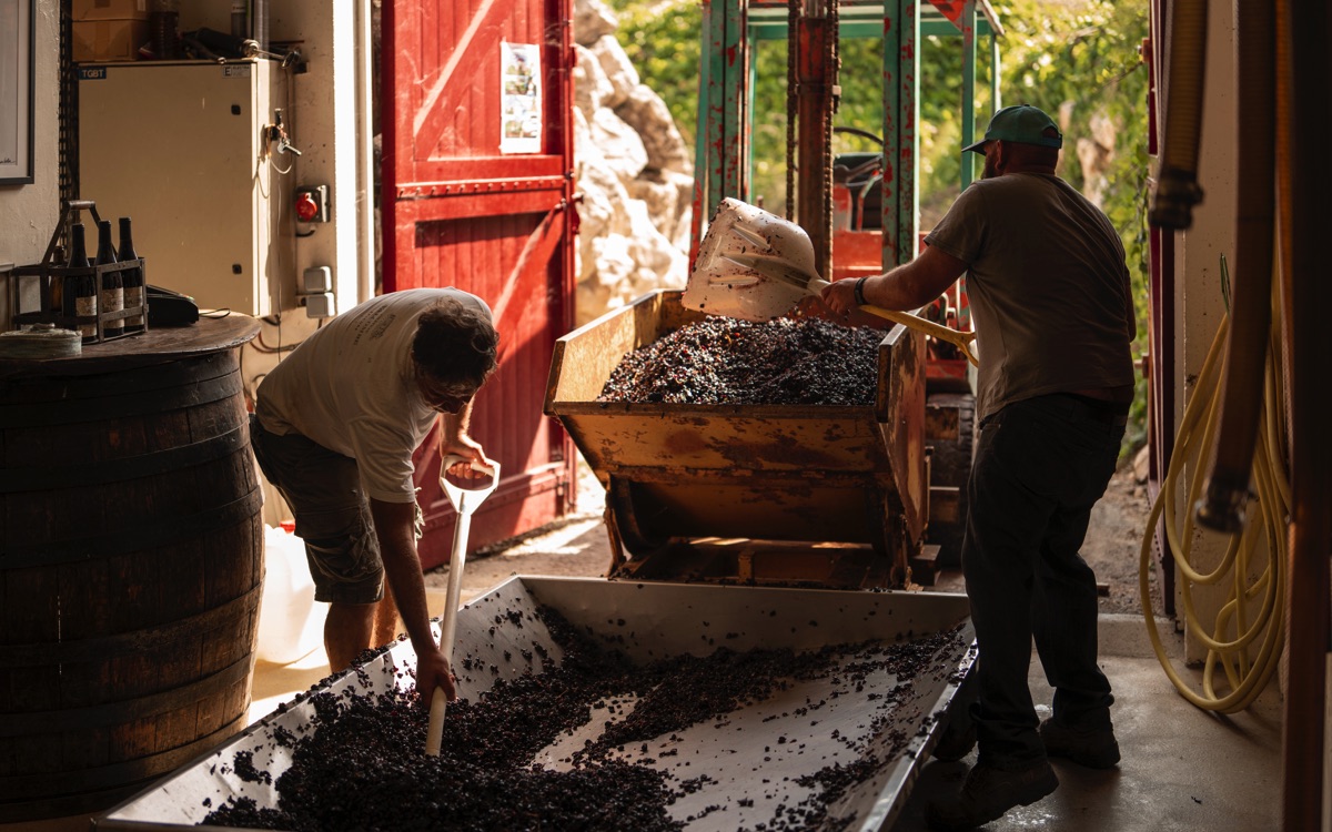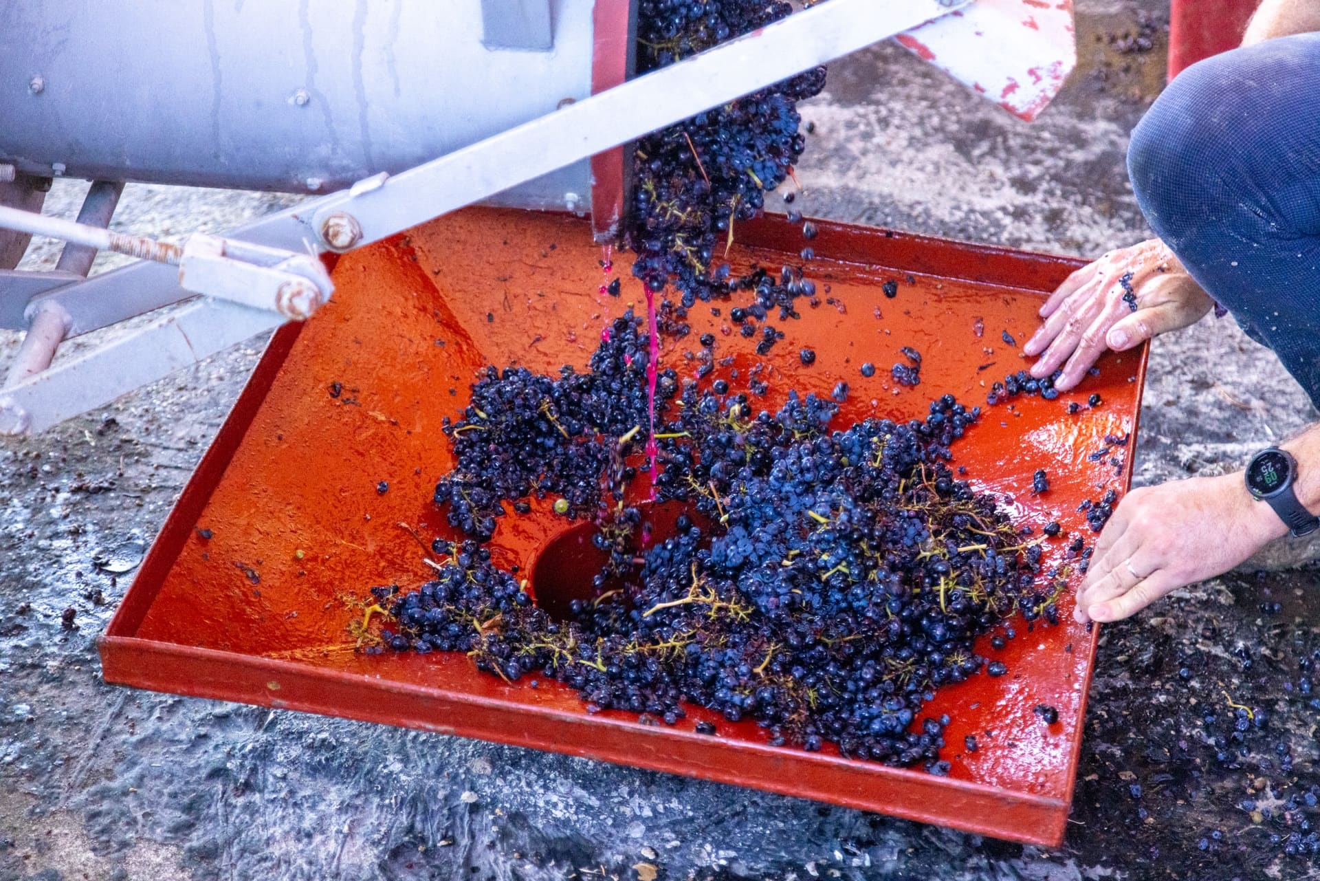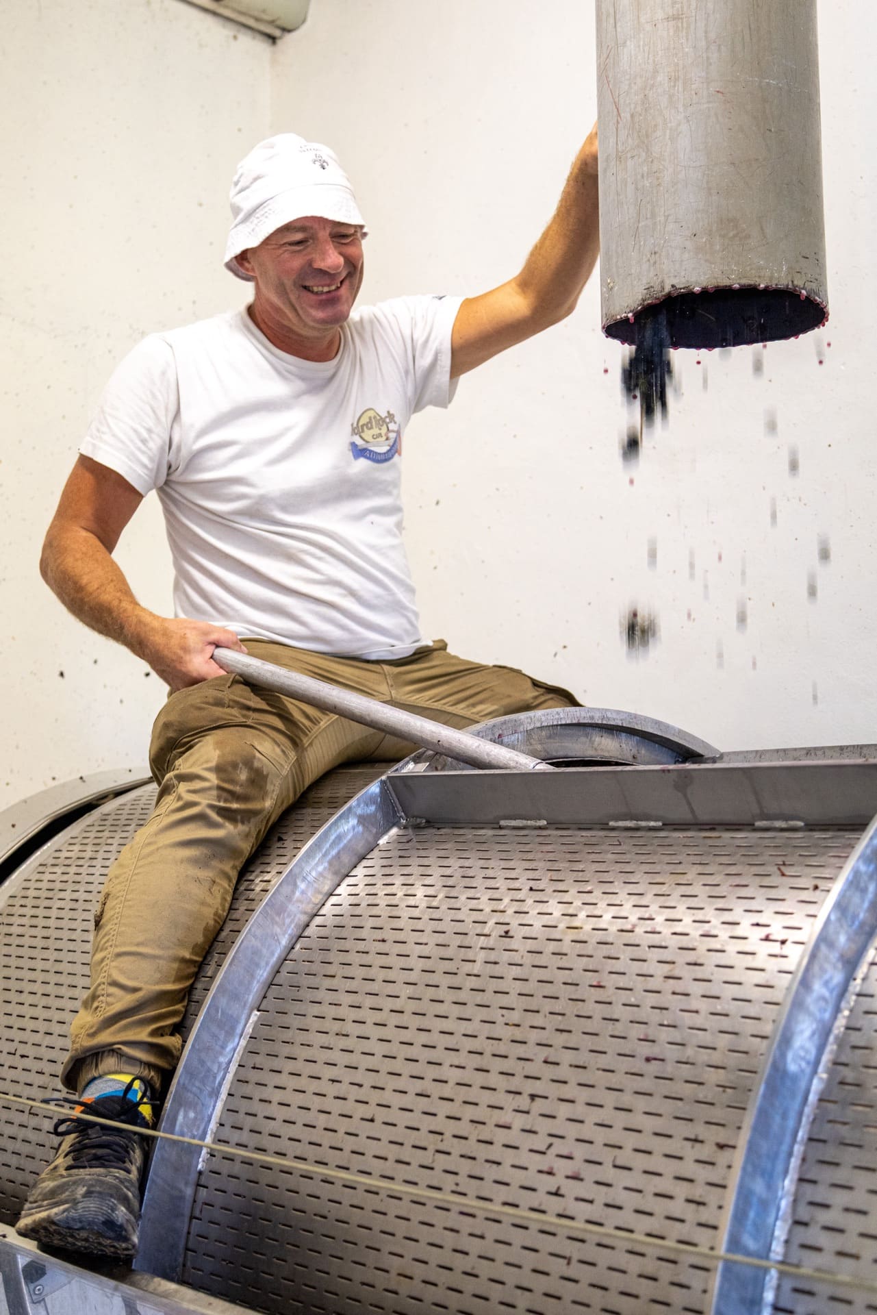 Par la gravitation, les grappes glissent dans les cuves pour commencer leurs fermentations. La température dans la cave gravitaire souterraine est stable ce qui équilibre et respecte les vins en devenir.